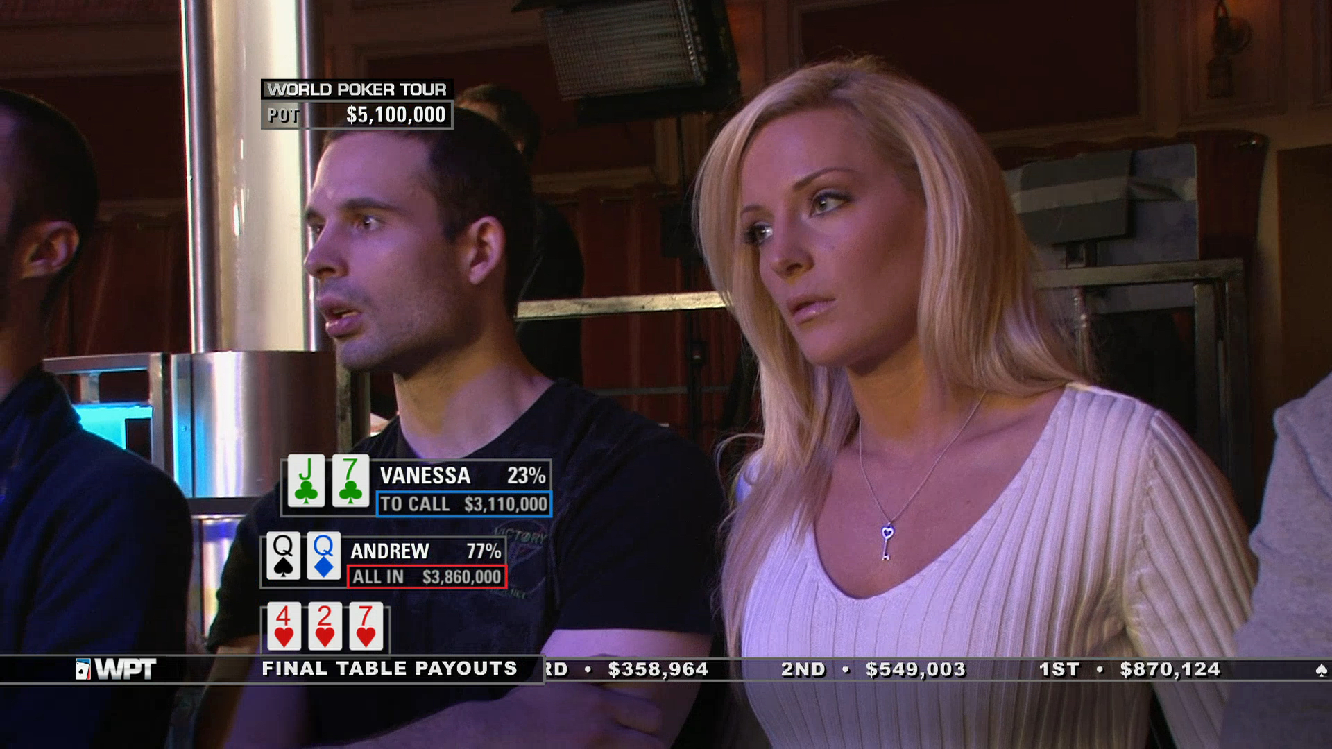 Vanessa Rousso looks to win her first WPT title, but Antonio Esfandiari and Andrew Robl stand in her way in the WPT Five Diamond World Poker Classic.