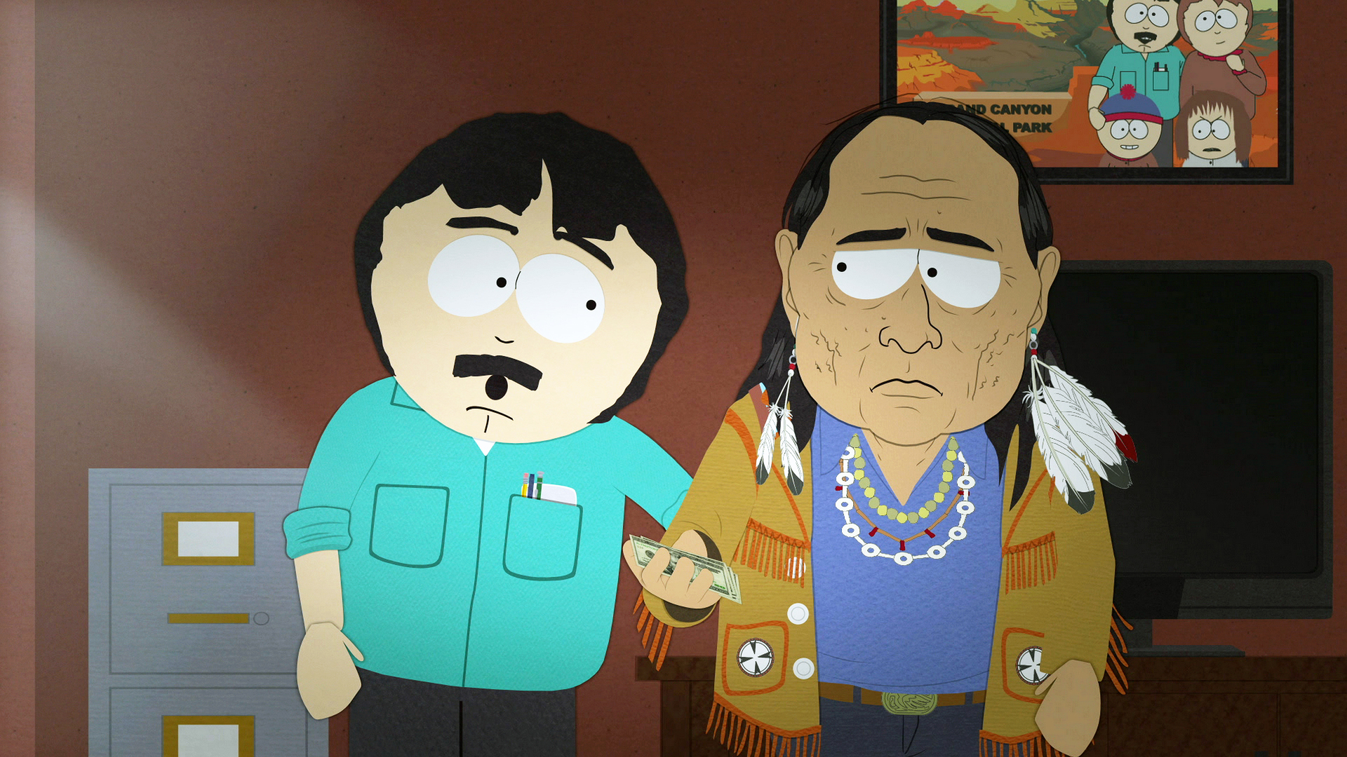 Die Kinder haben Mr. Garrison in der Stadt gesehen. Die Eltern in South Park sind wütend, weil er den Kindern Angst einjagt.