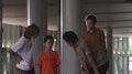 Takeshi Asakura está en un restaurante con varias personas y toma a una de ellas como rehén.