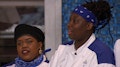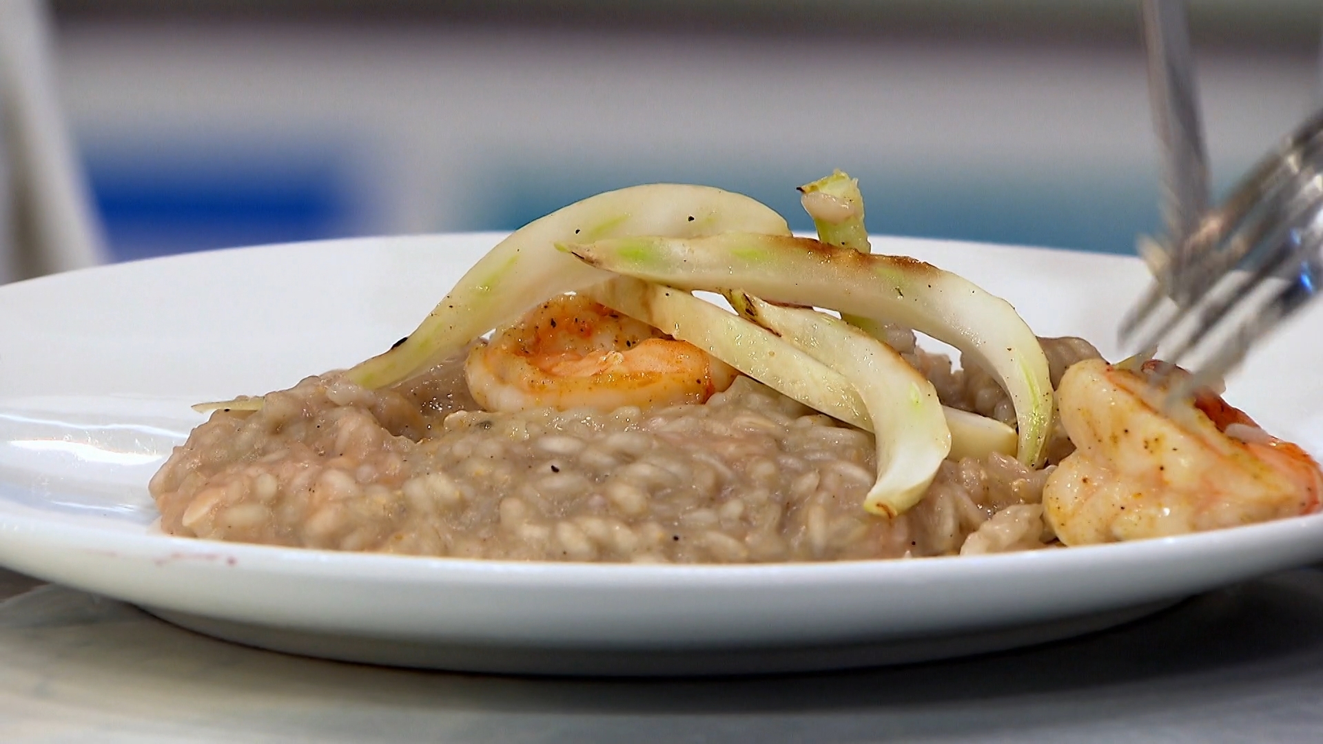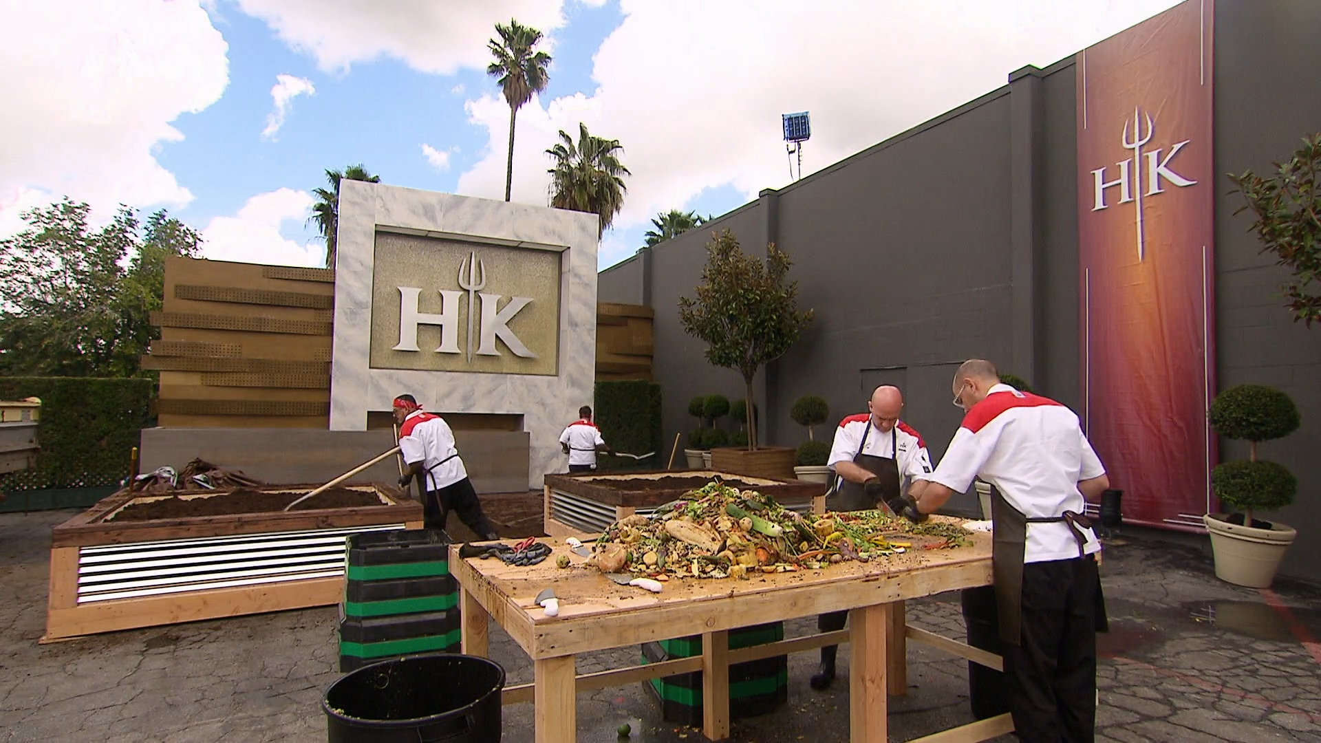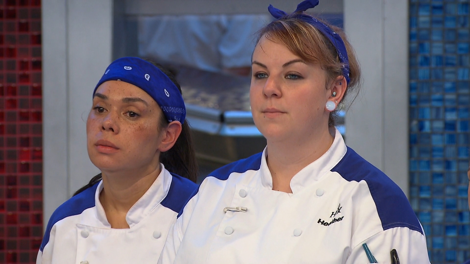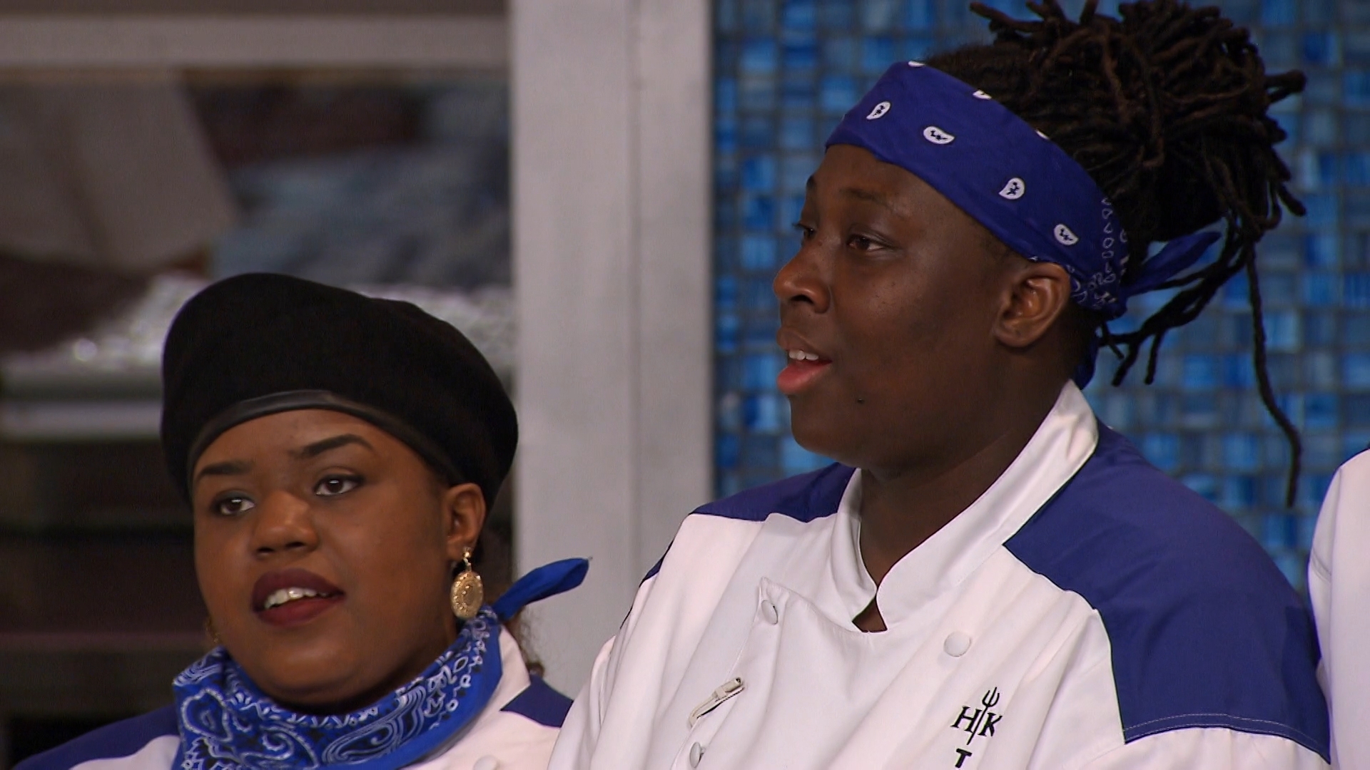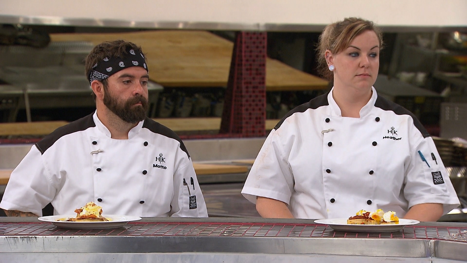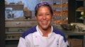 The chefs are tasked with serving lunch to a room full of Marines and prepare dishes that represent the air (chicken parmesan), the land (New York strip) and the sea (fish and chips).