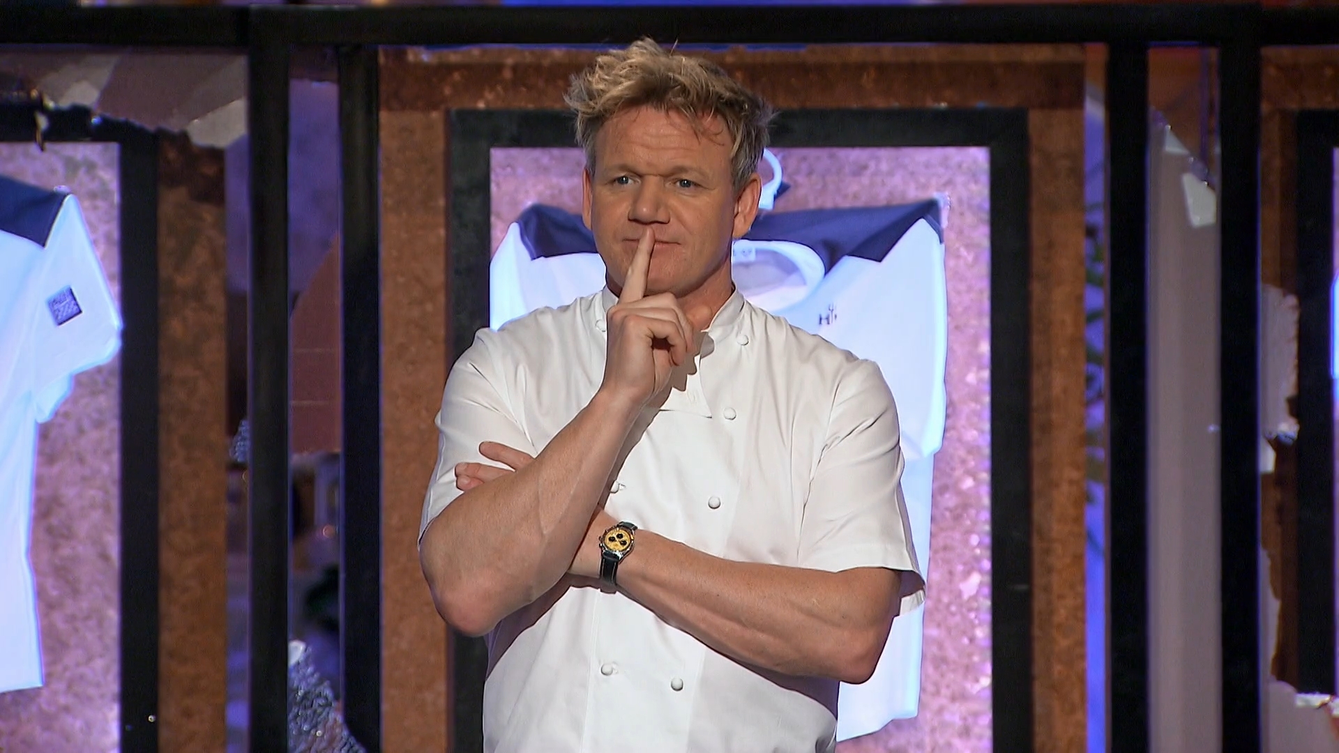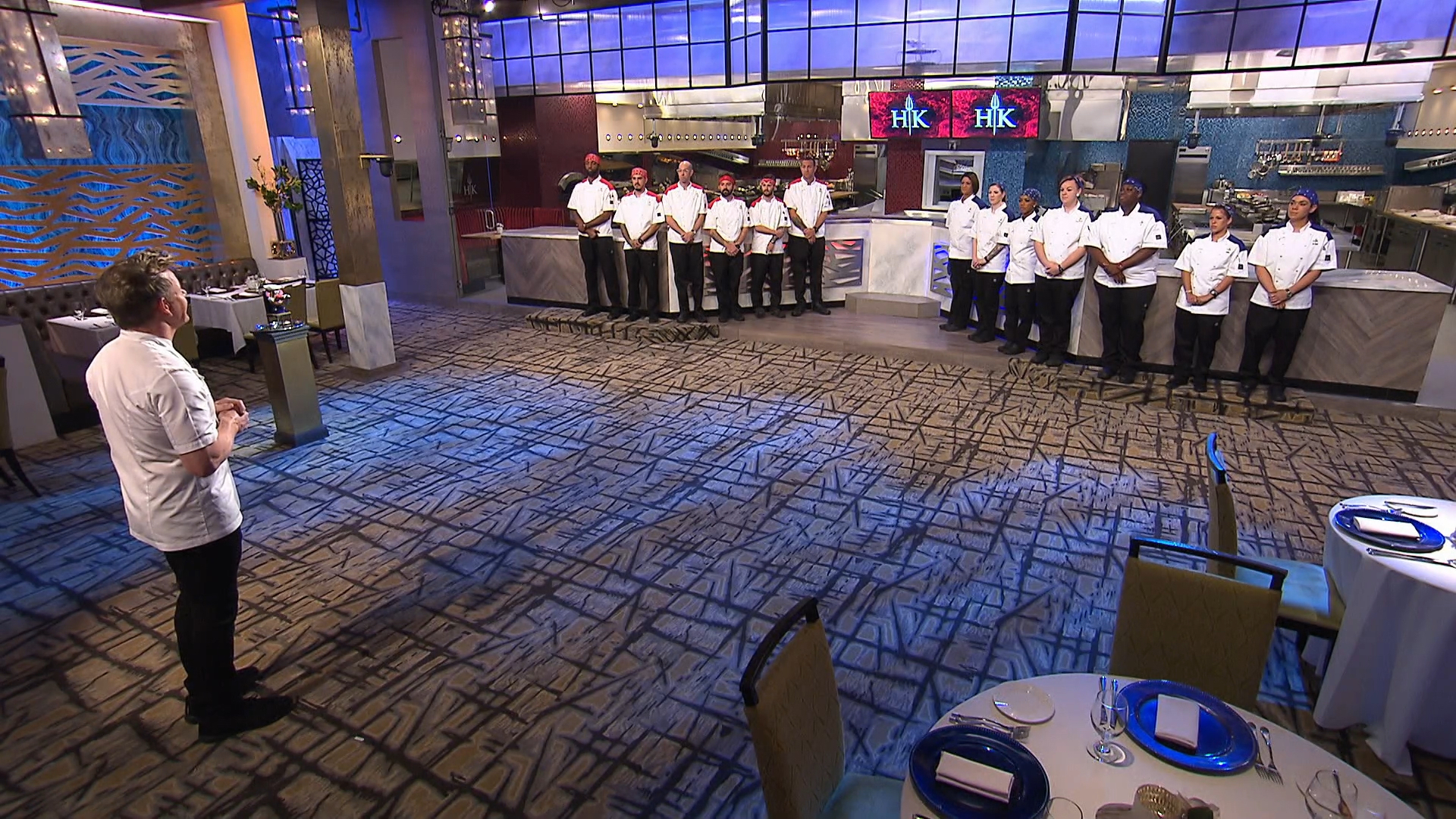 Chef Ramsay explains to the six remaining chefs that they will face three extensive challenges to determine which five chefs receive a black jacket.