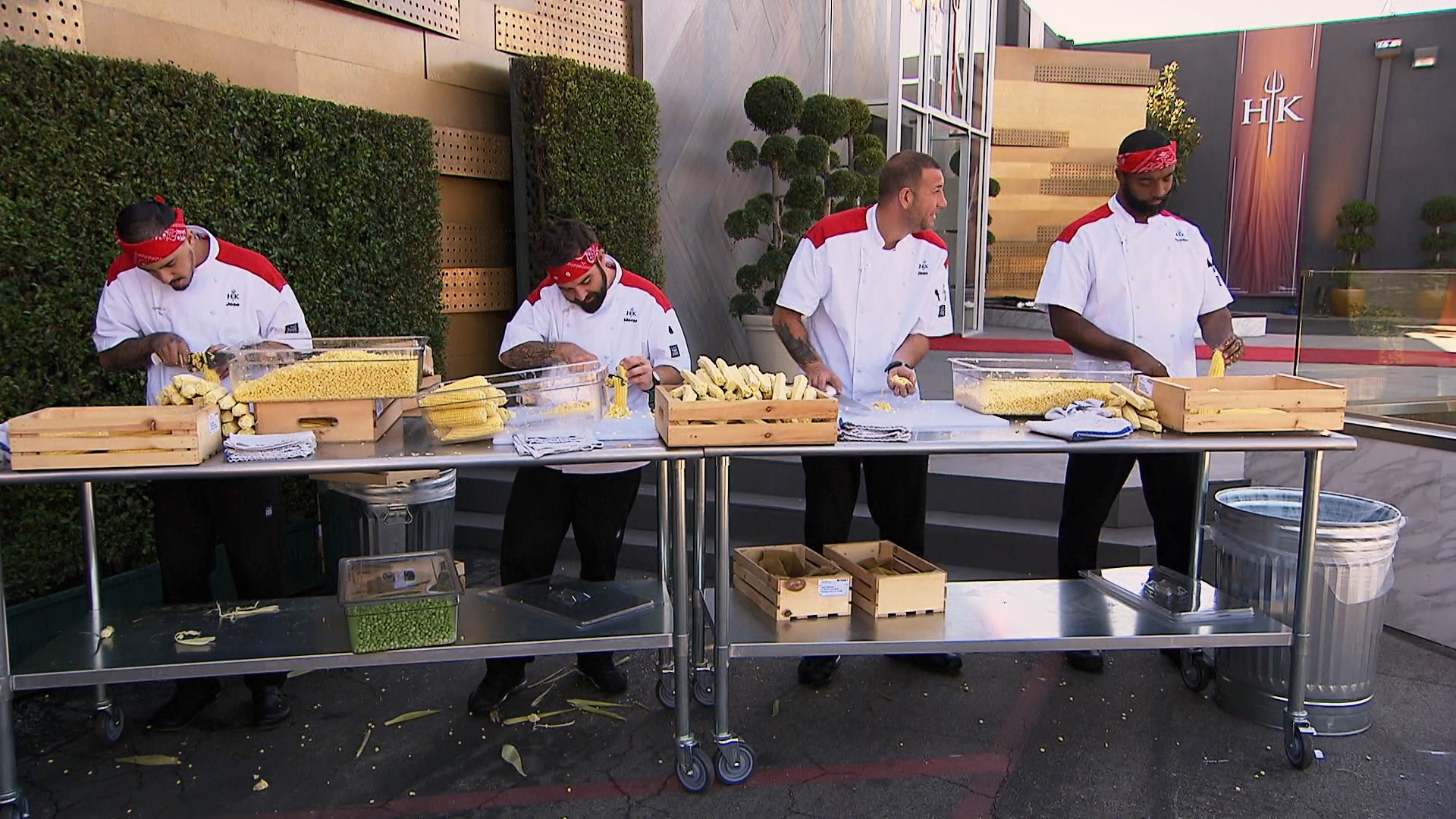 The chefs cook five commonly served "staple" dishes, but the challenge comes with a twist: each team will have to pick one member to leave the kitchen until only one is left.