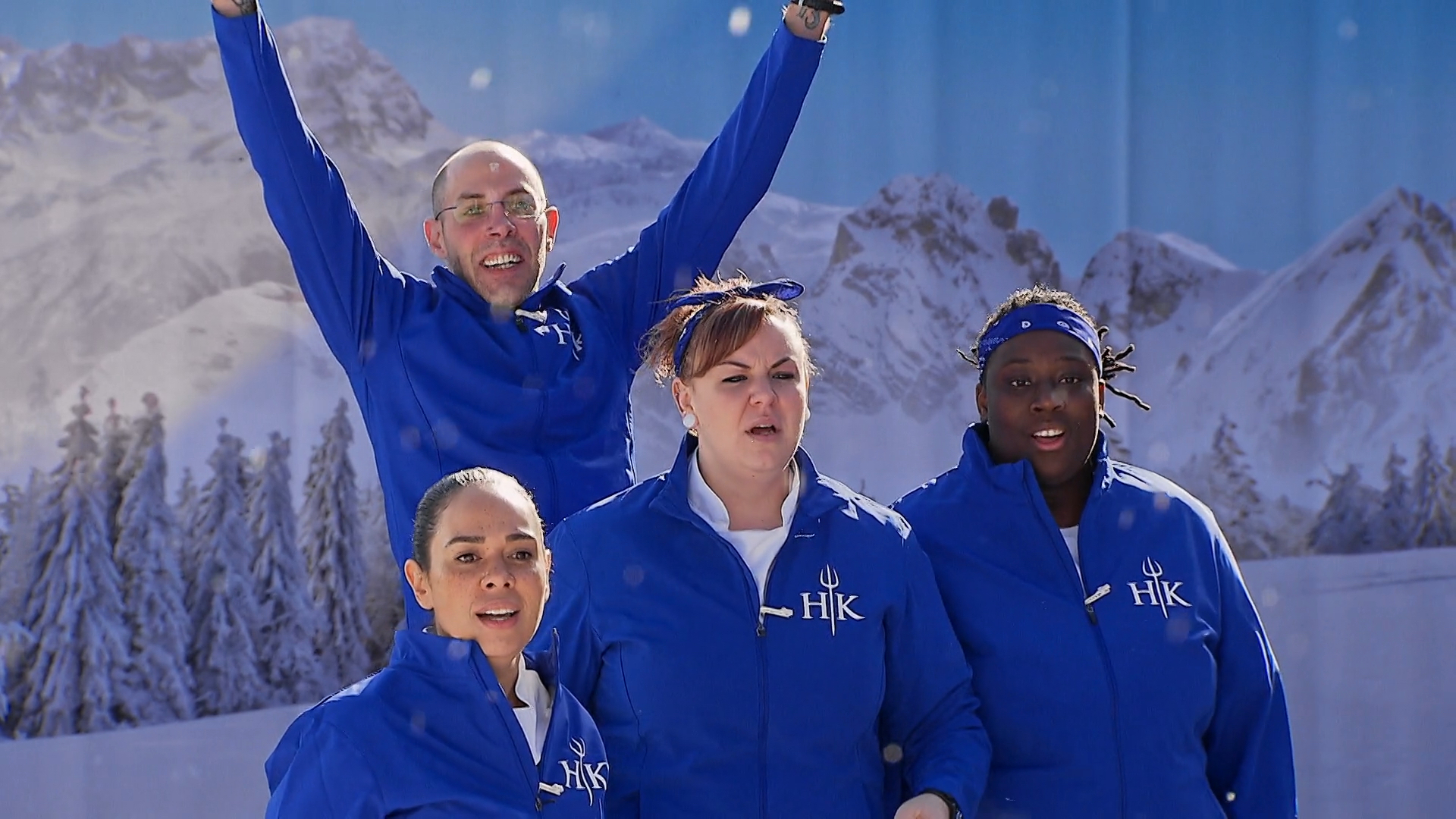 The chefs must compete in a sled race for an advantage in the winter soup challenge.