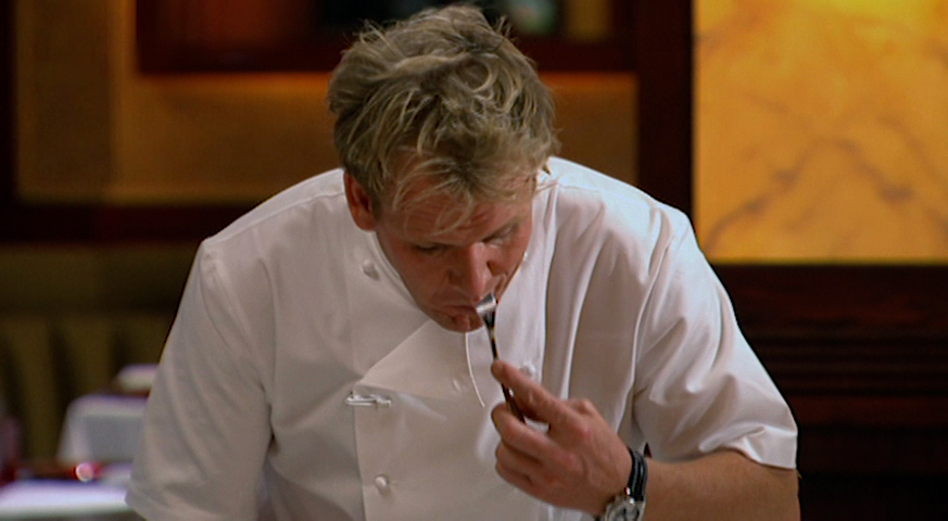 Chef Ramsay makes the nine remaining chefs take a blindfolded taste test. The winners get to go to a spa; the losers must clean the dorm.