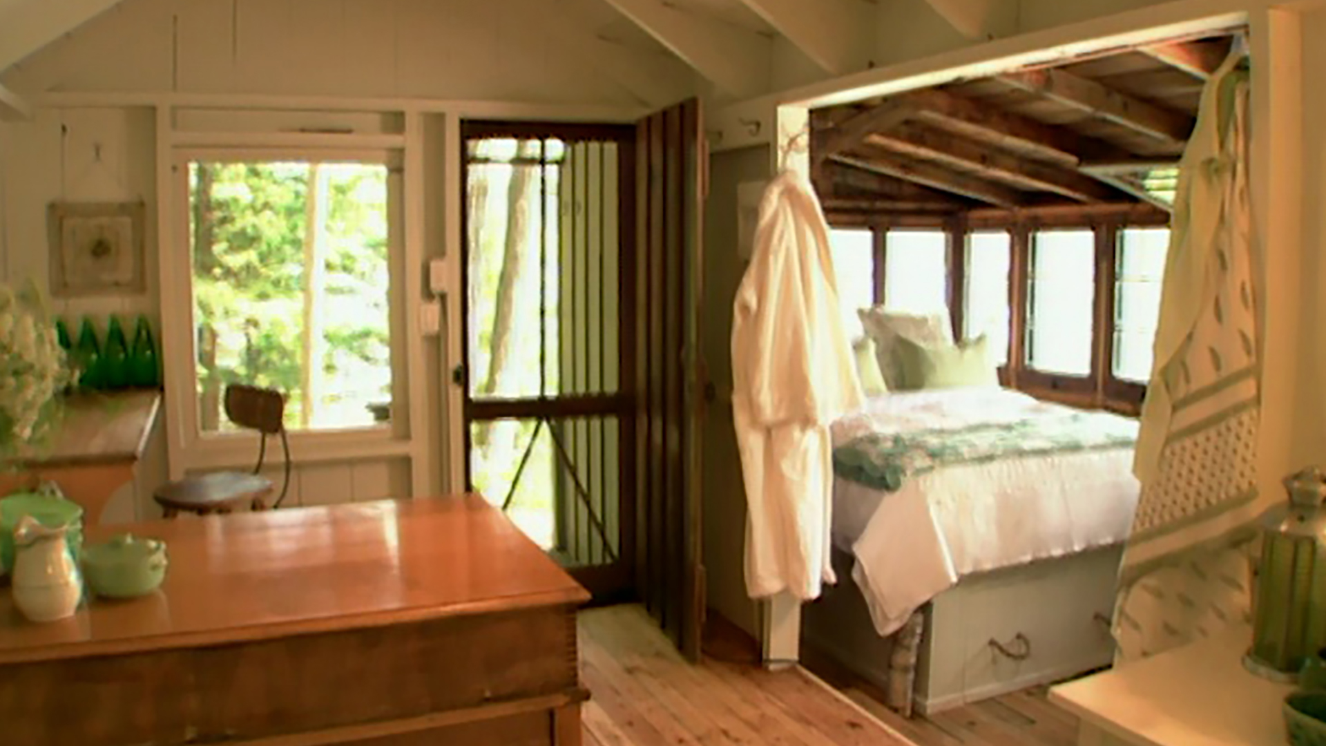 Welcome to the weekend! Room Service opens up a classic, woodsy cabin to its million-dollar lakeside view. Host Sarah Richardson relaxes the space with light-painted wood and projects that make the most of the cottage's cramped dimensions. She hunts through for antique quilts and throws and creates casual, fun fabric patterns using stamps made from vegetables. The kitchen is reconfigured and an innovative bed is created to take in the commanding view. With a getaway like this, Friday can't come soon enough!