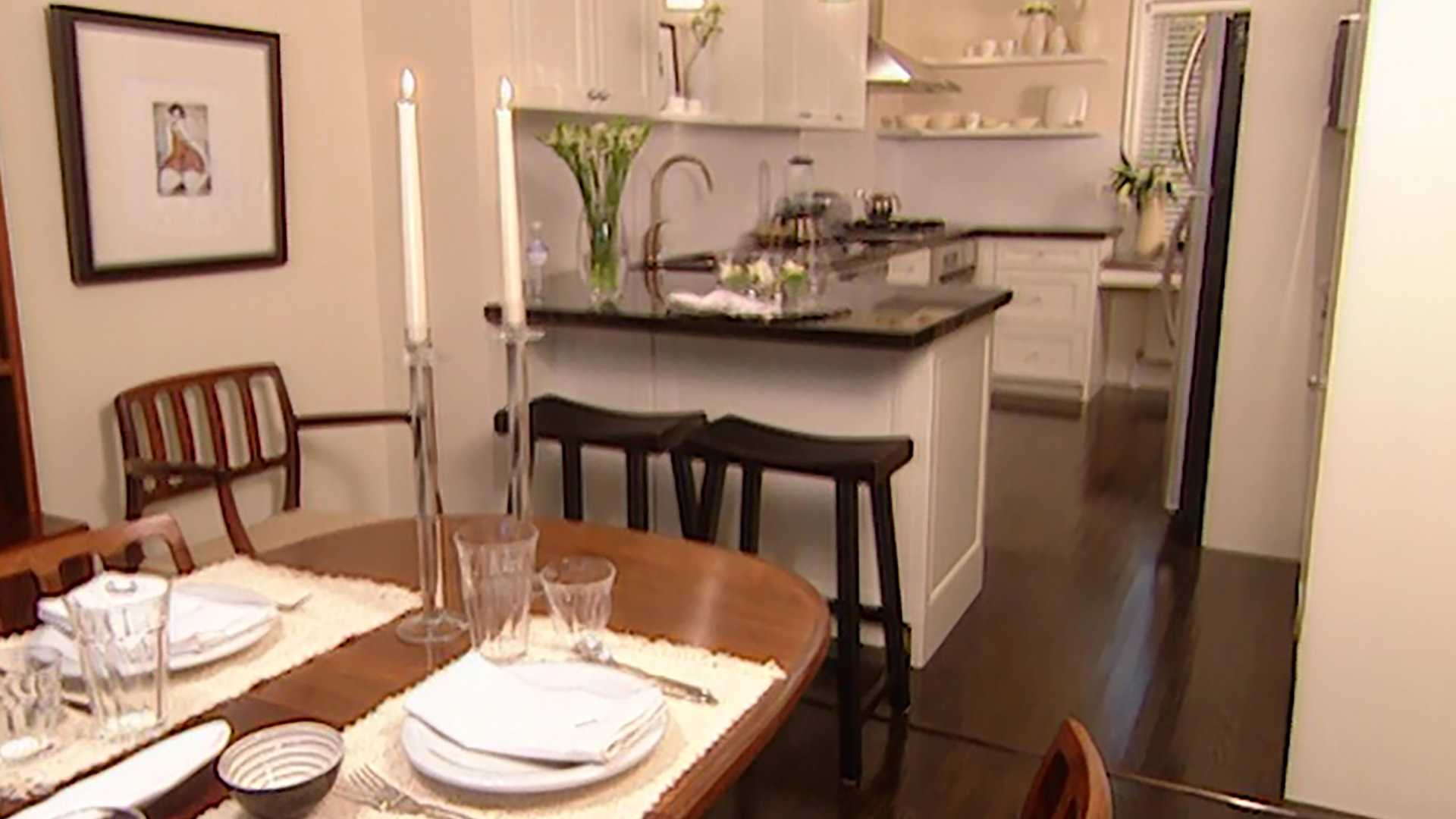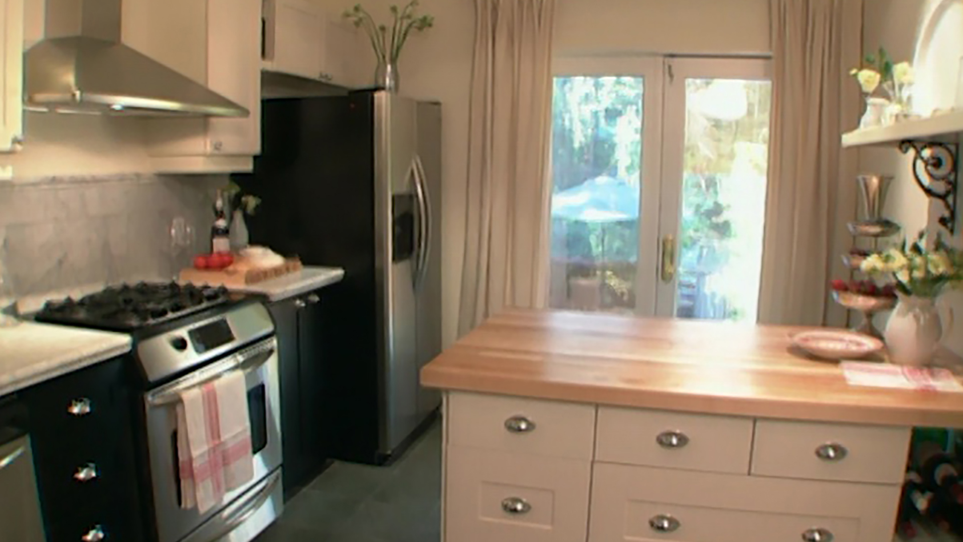 Give your kitchen café style. Room Service host Sarah Richardson selects transitional elements to bridge Left Bank flair with today's needs. A wall is removed to unite the space with the living room to meet today's entertaining needs. Traditional creams and blacks and a touch of red play off modern stainless steel appliances. We learn about the latest in countertop appliances and learn the art of custom silk screening. This kitchen serves up equal portions of practicality and flair!