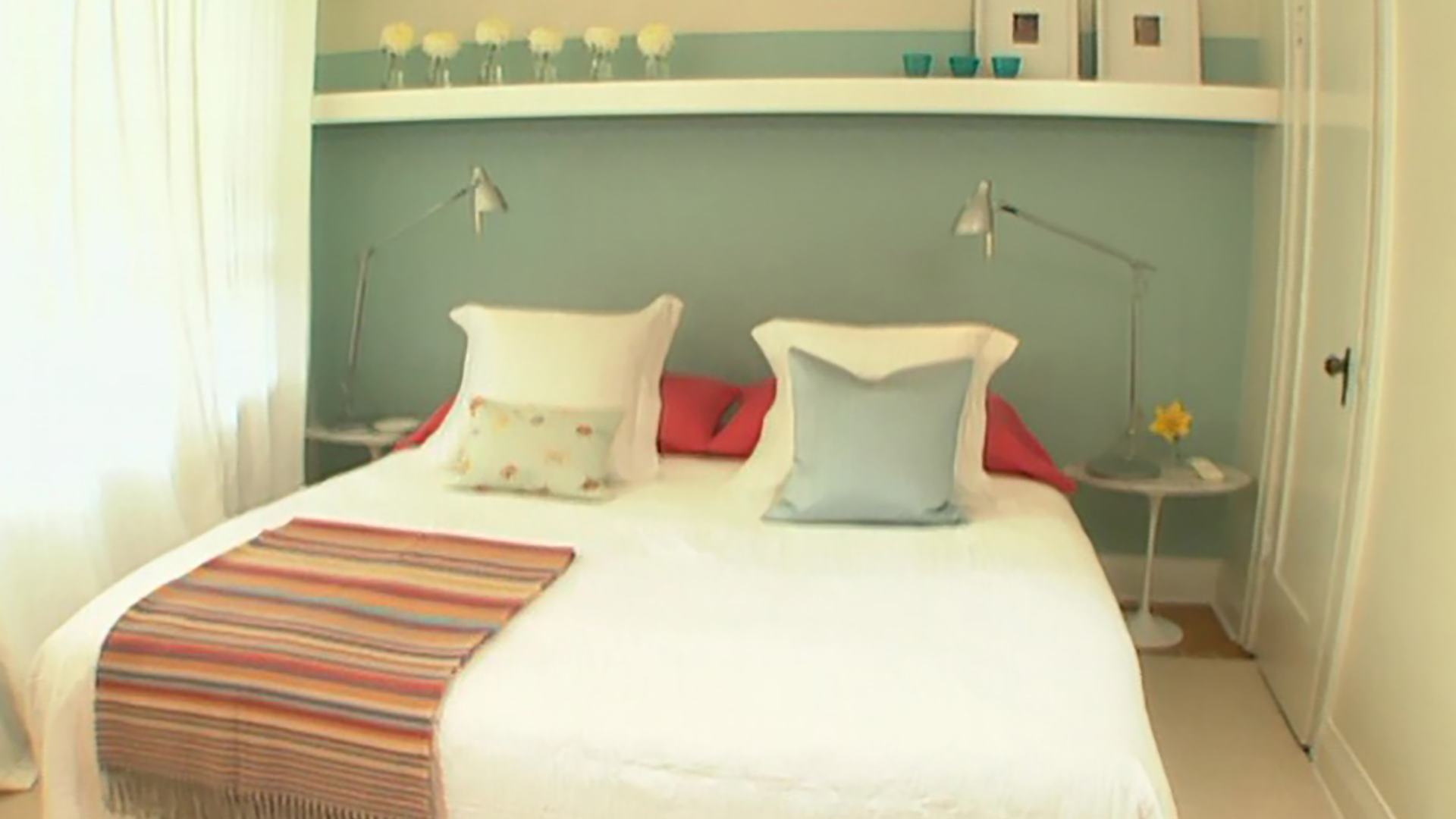 Think ocean breezes and an expansive blue sky. Room Service brings Miami spice to a typical bedroom, infusing it with a crisp, clean white palette. Host Sarah Richardson looks to shades of turquoise and coral, to tropical fruits and crashing waves to help achieve a light, modern feel. She takes us along to a favourite button shop to find just the right closures for accent pillows. We create a hanging bookshelf to enhance the sleek appeal of the space, and for art look to a photo transfer artist. It's a dreamy environment, restful like an island holiday!