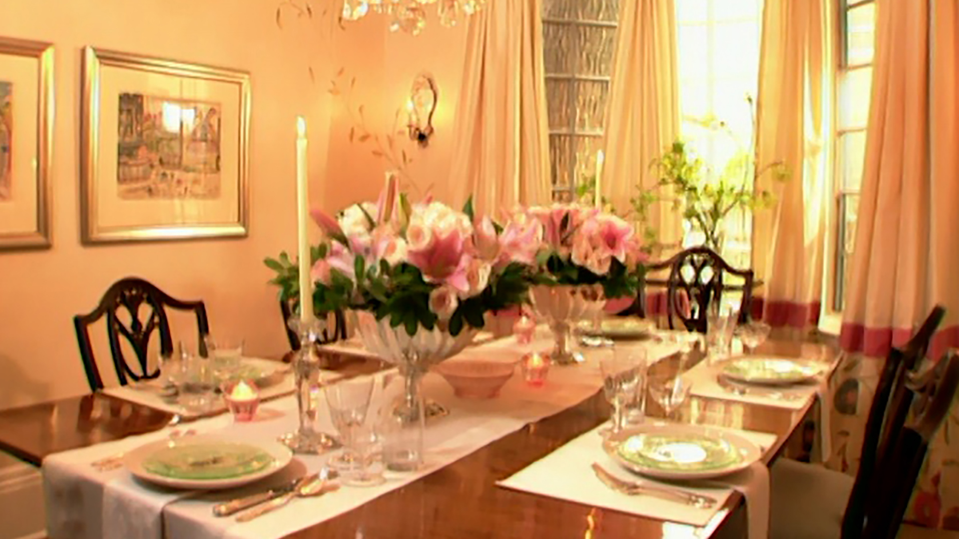 Come to dinner! Room Service unifies a dining room with its view on the garden. Host Sarah Richardson combines greens, pinks and blues to create a space that's perfect for everything from afternoon tea to a formal sit-down dinner. A decorative painter joins us to create a subtle, vine-inspired treatment for the walls and we search for unique crystal pieces for the table. Additional accents for the room take their cues from the outdoors. It's a playful and welcoming space for every occasion!