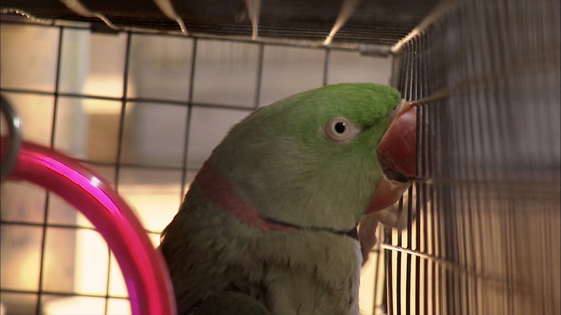 The small paths in Michelle's house are the only way she can get to her collection of more than 60 birds. Her husband of 30 years has been chased from the home by the animals and the hoarded piles that in some places reach five feet high.