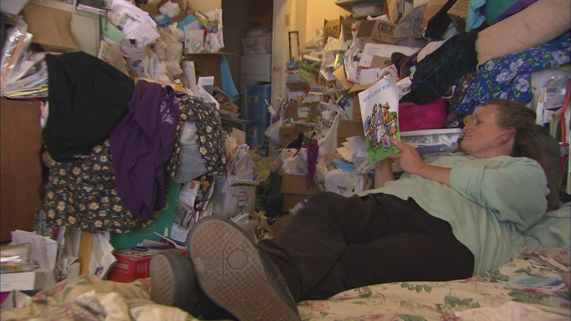After losing a cousin on 9/11, Dawn's hoarding spiraled out of control, filling much of the house and part of the yard. The city will impose fines of $1000/day if she doesn't clean up.