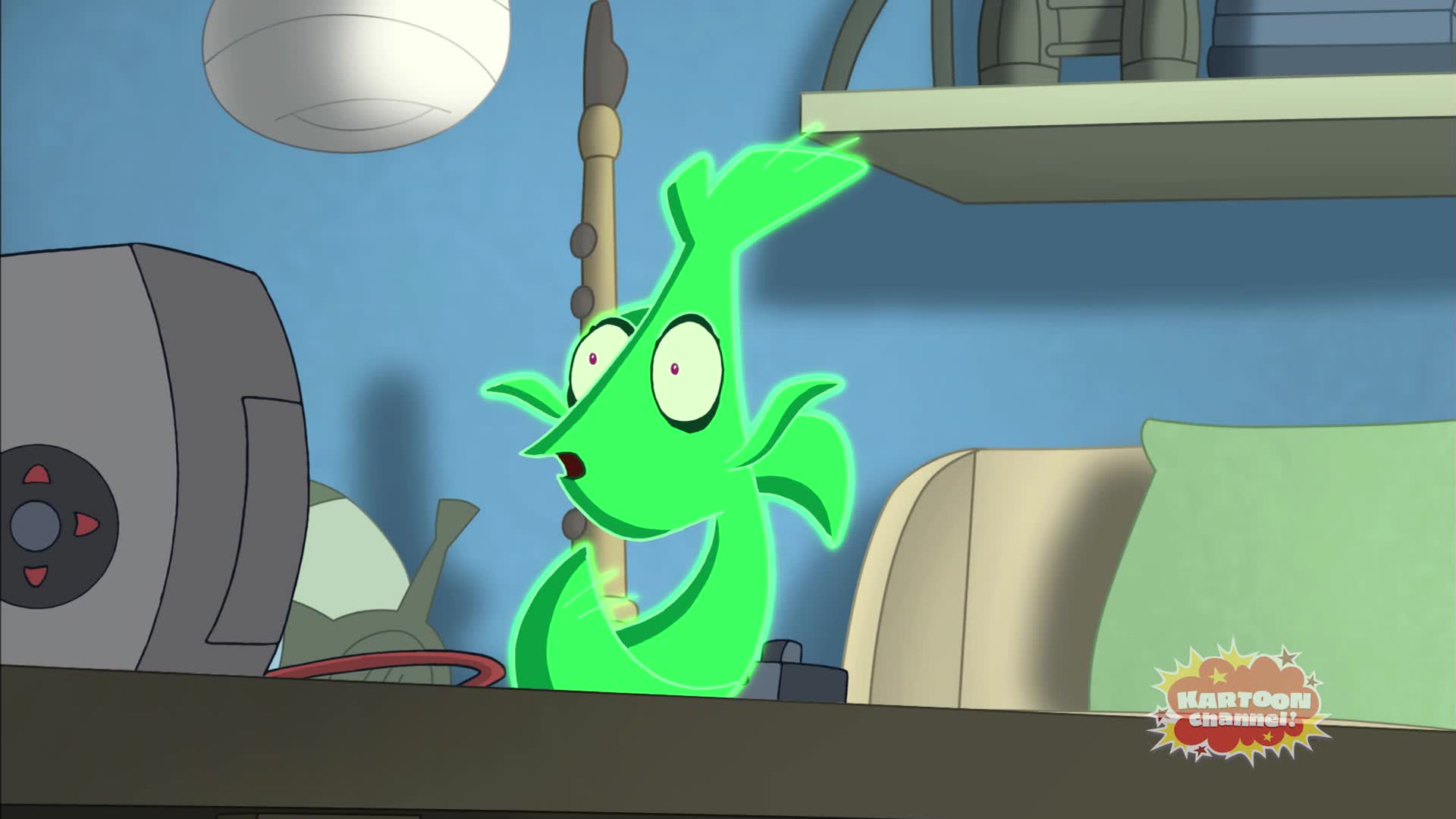 An ill-conceived attempt to turn himself invisible renders Admiral Bubbles green and glowing. Beanie takes him to a veterinarian to see if he can be cured, and the vet announces that he needs to be kept overnight for observation.