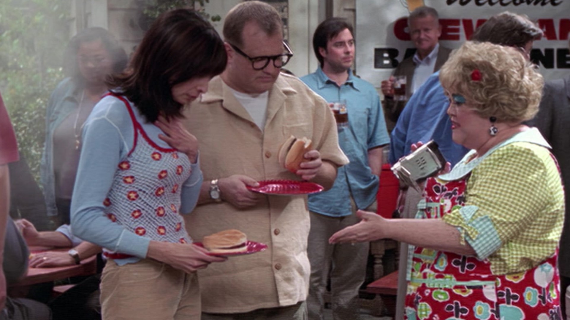 When Mimi and Steve buy a house next to the Warsaw, Drew and the guys get drunk and urinate in Mimi's yard.